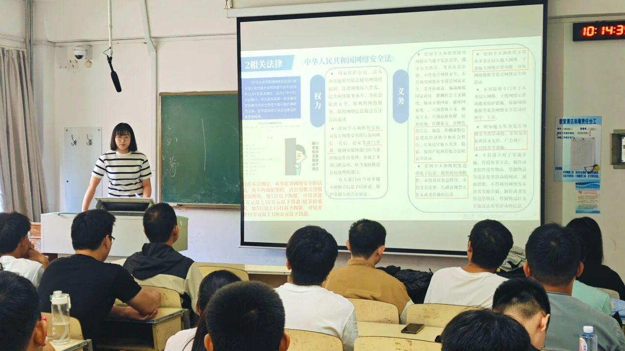 班会着重强调大学生网络行为规范与法律意识的增强。辅导员以“提升舆情素养,严守法律底线”为主题,结合近期网络热点和真实案例,深入剖析“造谣传谣”“侵犯隐私”“网络暴力”等行为的法律风险与危害,并强调“网络不是法外之地”,要求同学们做到“三不”:不传播谣言;不发表过激言论;不参与网络暴力。辅导员还带领同学们学习了网络舆情的定义、高校网络舆情的特点与成因,指导同学们在面对网络信息时,做到核实来源、理性判断 ,自觉抵制不良网络行为,共同维护健康的网络环境。